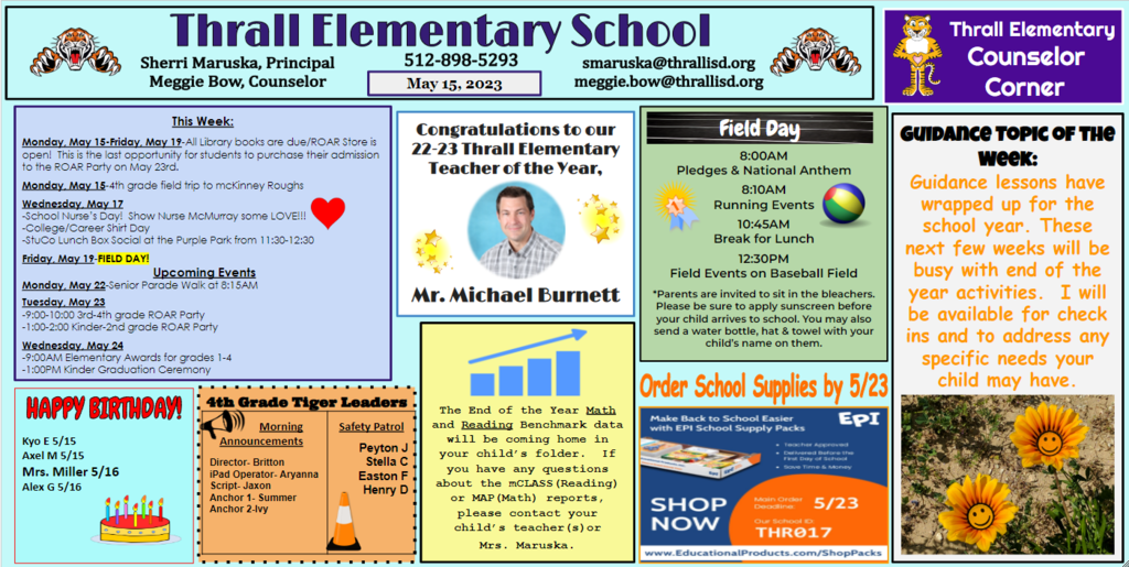 Please contact Mrs. Emily Laurence, HS Guidance Counselor, 512-898-5193 ext. 202, if you have any questions or concerns.